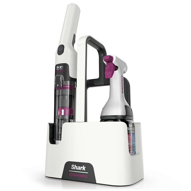 Stop stains in their track, anytime and anywhere with Shark StainForce. Ultra-powerful suction and 30x more stain-fighting power* combine to deliver unbeatable tough stain removal. Cordless and always ready when you need it. A uniquely designed Grab and Go Caddy stores your StainForce, accessories and chemical solution allowing you to get to the mess faster for a quick clean.